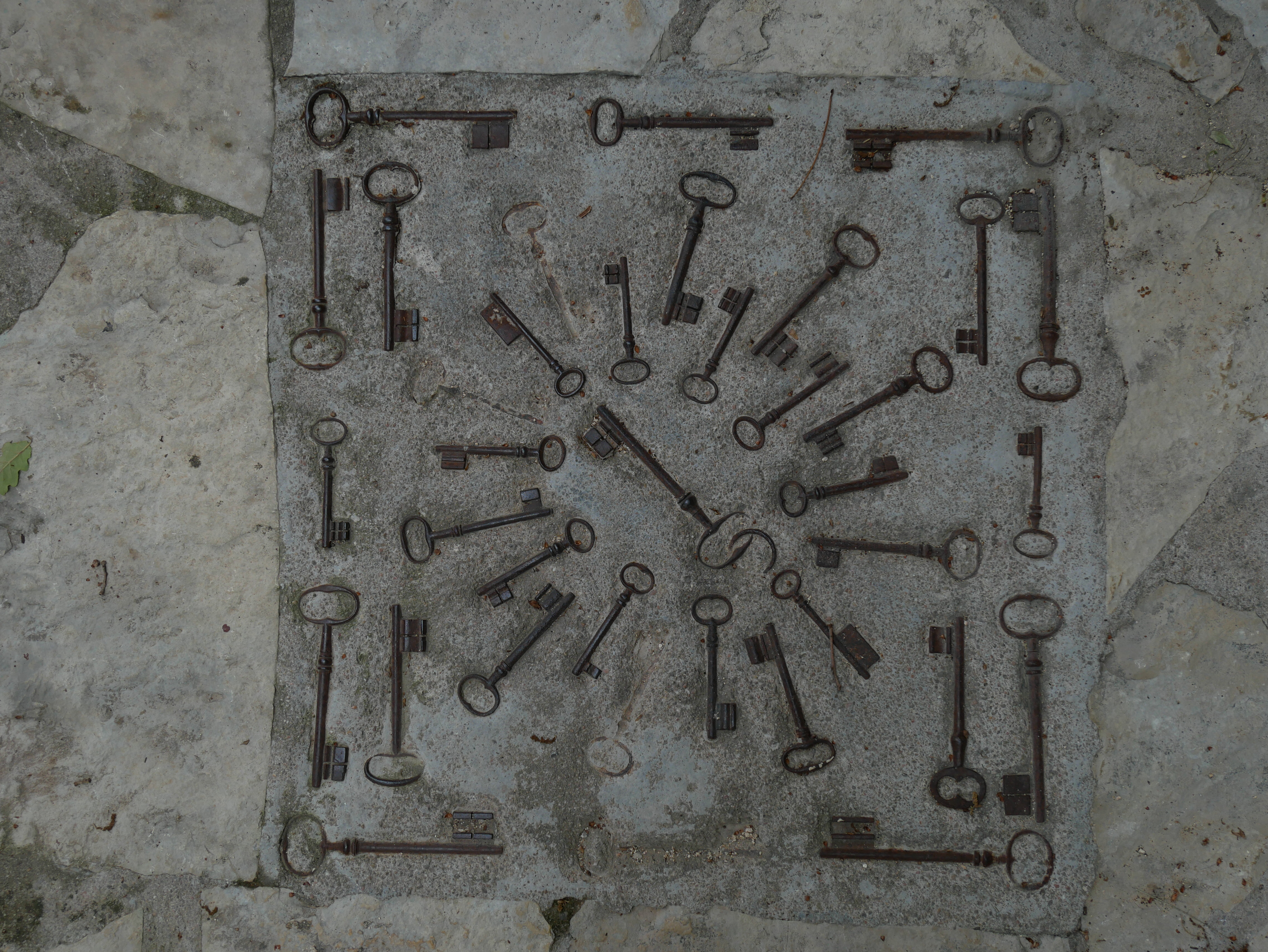 Ces paillassons sont simplement réalisés avec quelques vielles clés coulées dans le ciment de finition.
